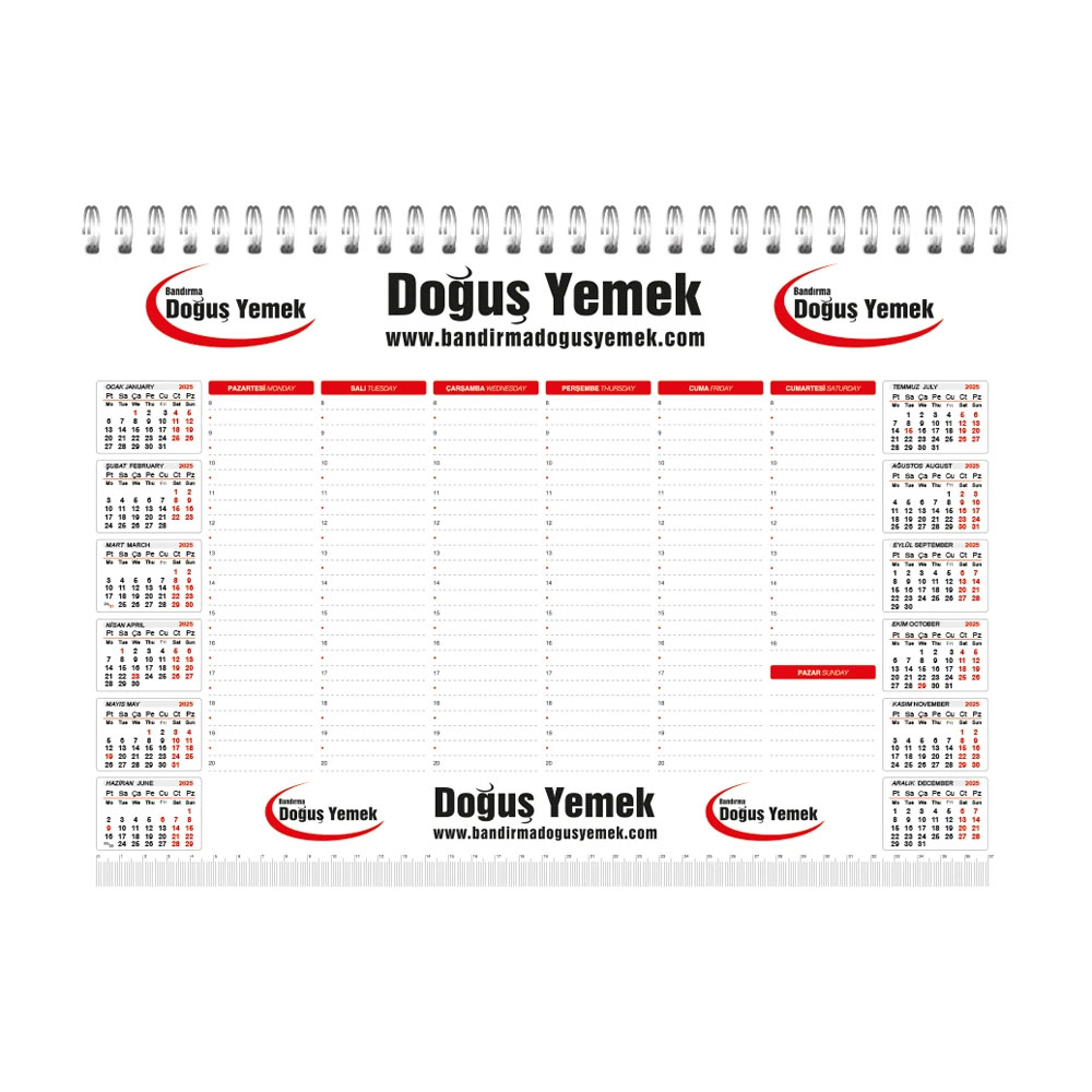 * Cilt: Spiralli * Kapak: 300 gram Amerikan Bristol * Selefon: Mat / Parlak * İç: 80 gr 1. Hamur * Yaprak Sayısı: 52 * Farklı ebat ve özelliklerde üretilebilir.